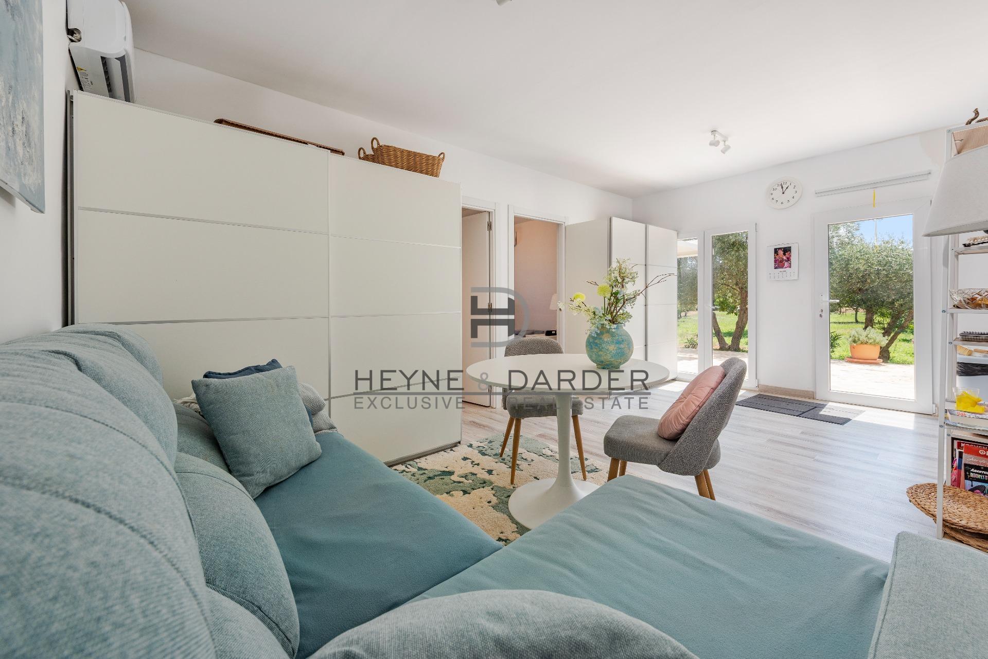 Die Außenbereiche sind auf mediterranes Wohnen ausgelegt und bieten einen 12 x 6 Meter großen Salzwasserpool als zentrales Element, weitläufige Gartenflächen mit Obstbäumen sowie Bereiche für Freizeit und Entspannung im Freien. Eine Außenküche mit Grill und Pizzaofen rundet das ideale Ambiente für gesellige Treffen und längere Aufenthalte ab.