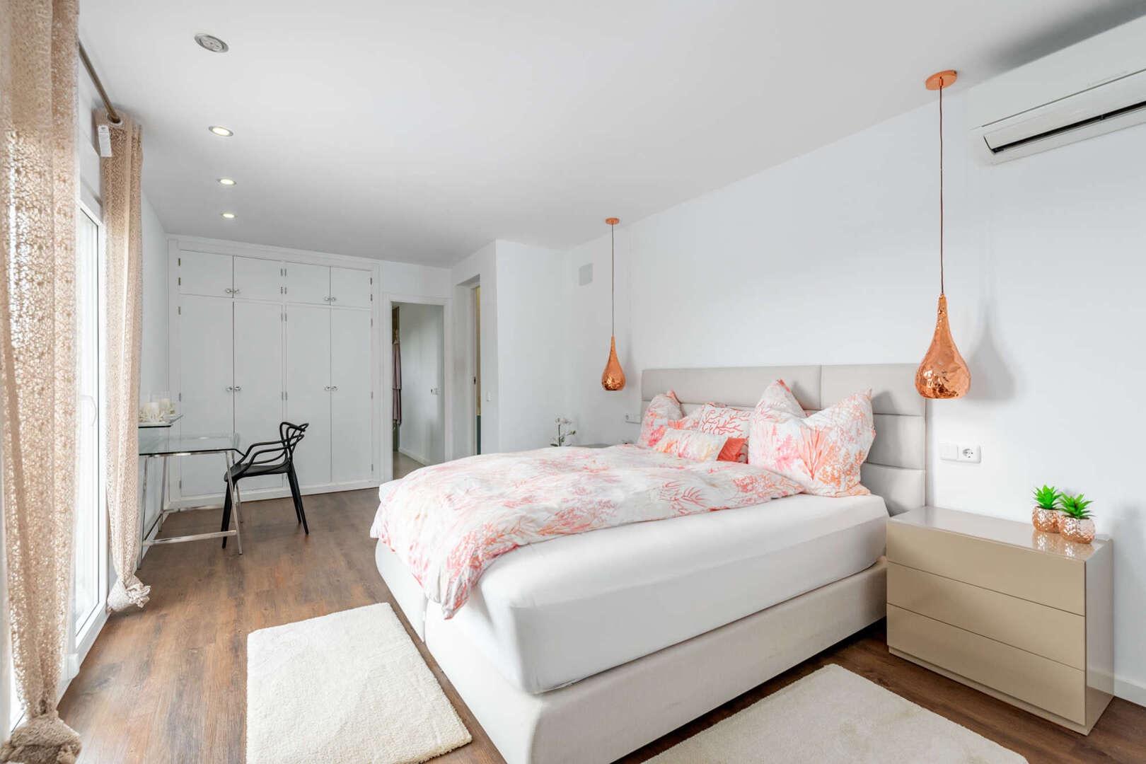 Diese Villa mit 279 m² Wohnfläche wurde 1983 erbaut und sorgfältig gestaltet, um zeitgemäßen Komfort in einem klassischen und hellen Ambiente zu bieten. Der Grundriss besteht aus vier geräumigen Schlafzimmern, zwei modernen Badezimmern und einem großen offenen Wohnzimmer mit einer hochwertigen offenen Küche, die von der Marke Leicht entworfen wurde.