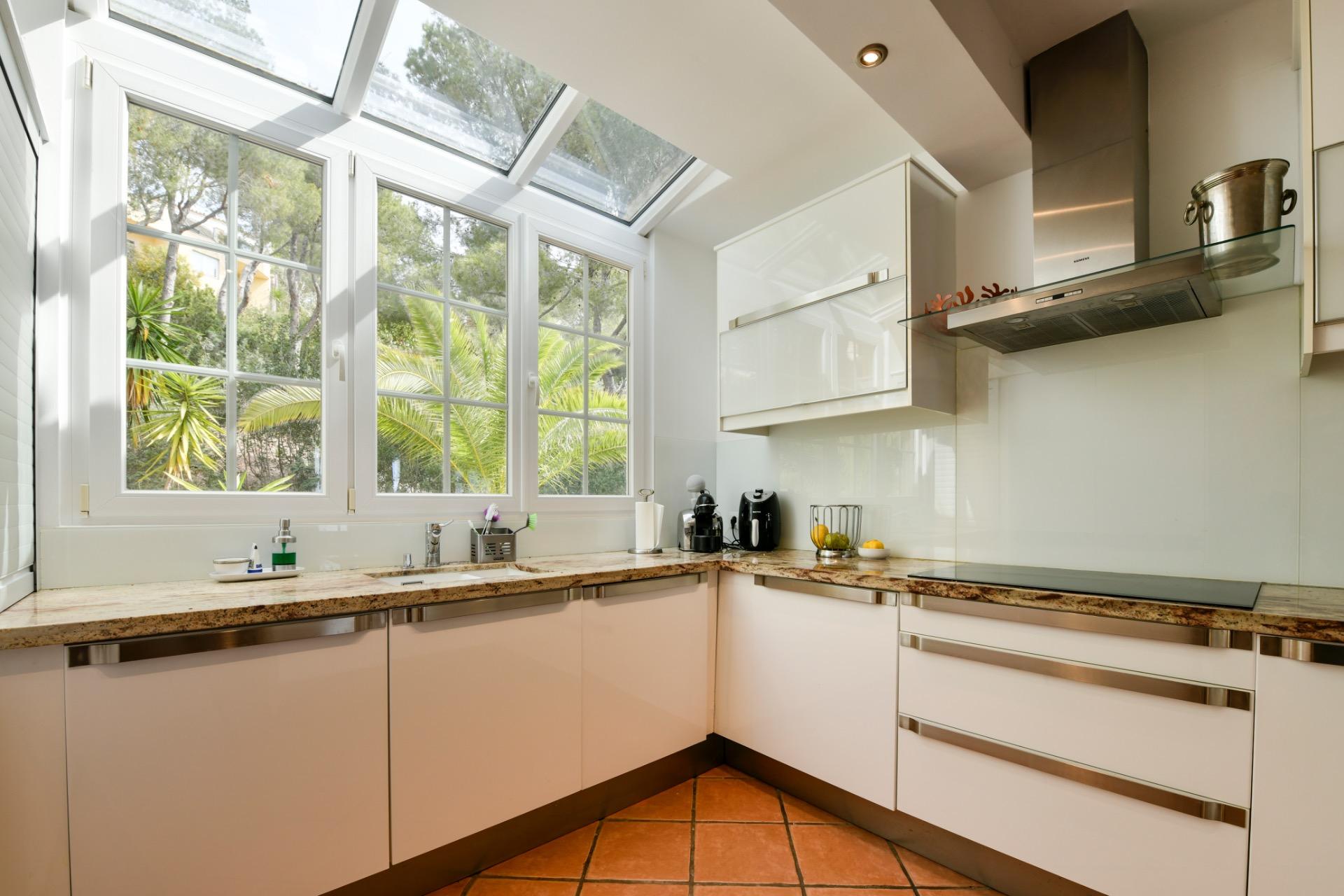 Located in a quiet and exclusive residential area, this elegant villa offers a serene setting just a five-minute walk from the sea. Thanks to its south orientation, the property enjoys exceptional luminosity throughout the day, allowing you to make the most of the Mediterranean climate from its panoramic terraces.