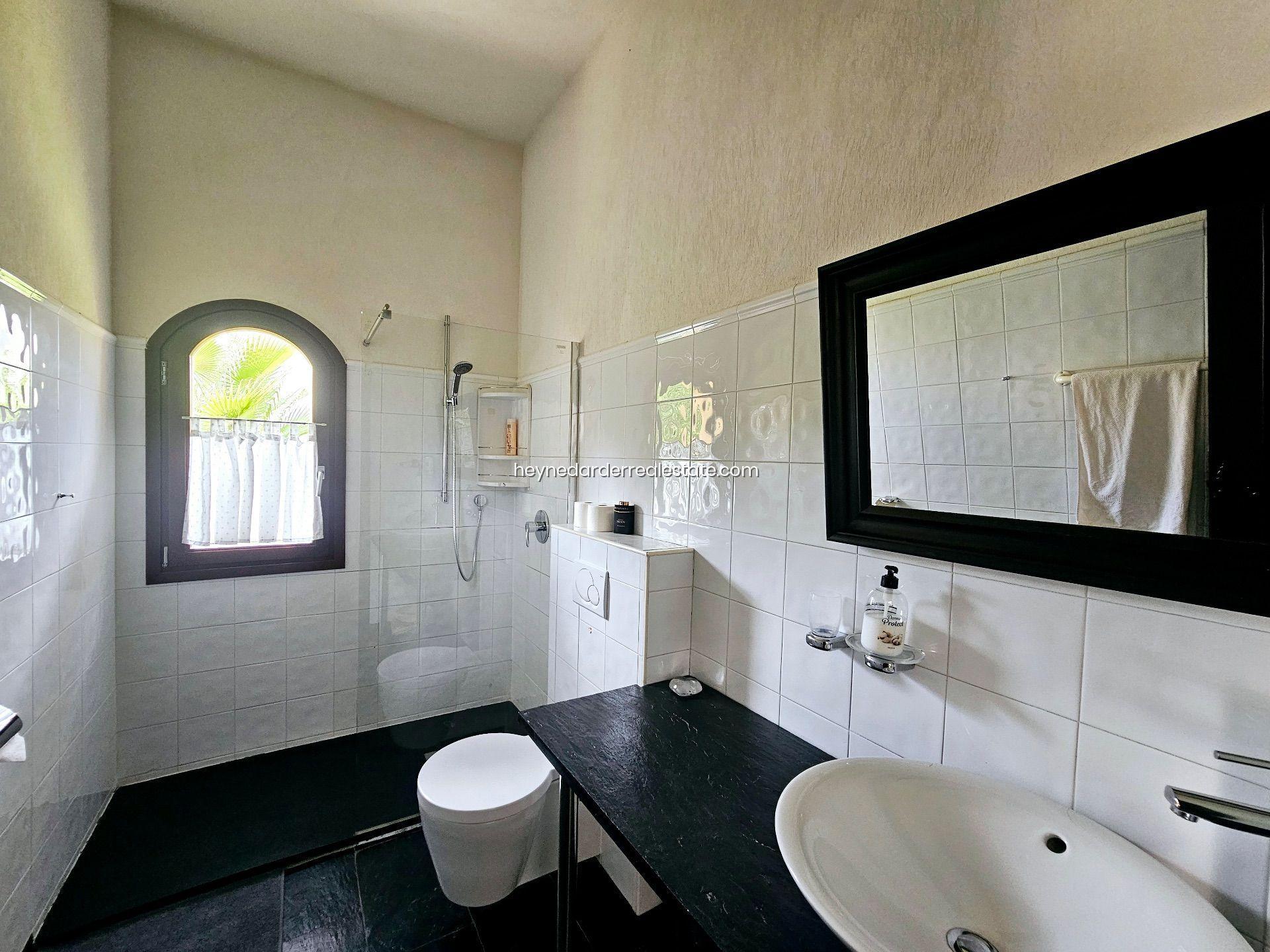 The villa is equipped with an aerothermal heat pump and a photovoltaic installation, offering an efficient and sustainable solution for energy consumption. Additional details such as Meranti wooden windows, alarm system and automatic awnings guarantee a comfortable, safe and modern living experience.