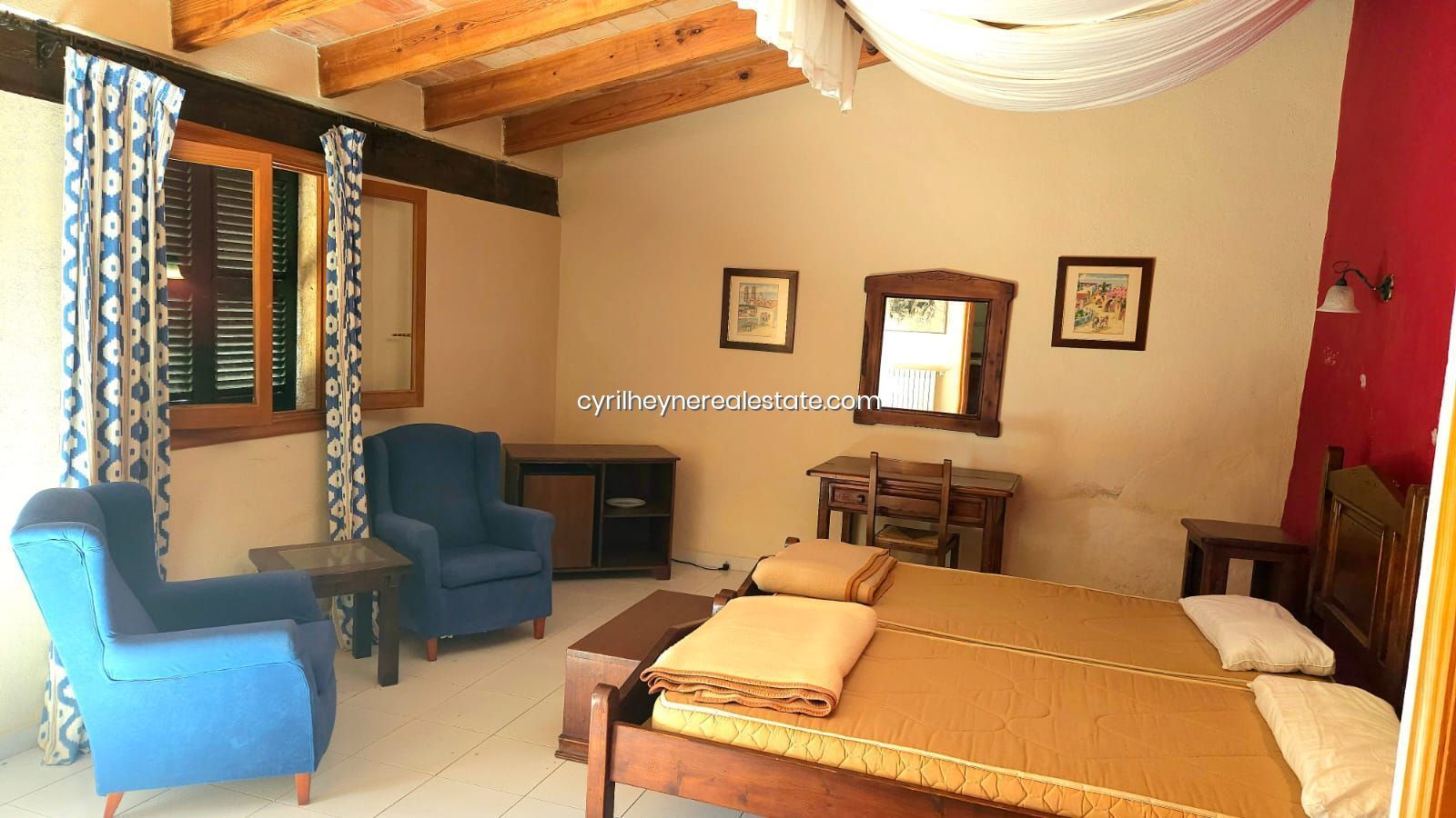 Traditional floors, wooden ceiling beams and period shutters are just some of the elements that have been carefully restored to preserve the authentic soul of this estate. These original details provide a warm and welcoming atmosphere, transporting visitors to the history and heritage of Mallorca.