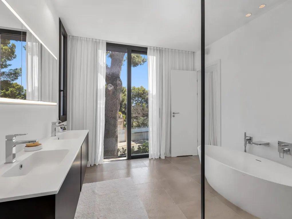 Located in the sought after area of Cas Català, this modern villa offers an exceptional living experience. Situated on a large flat plot, it is ideal for families with children and is located in a quiet area yet only minutes away from the best beaches and local amenities. Breathtaking panoramic and sea views can be enjoyed from all floors of the property.