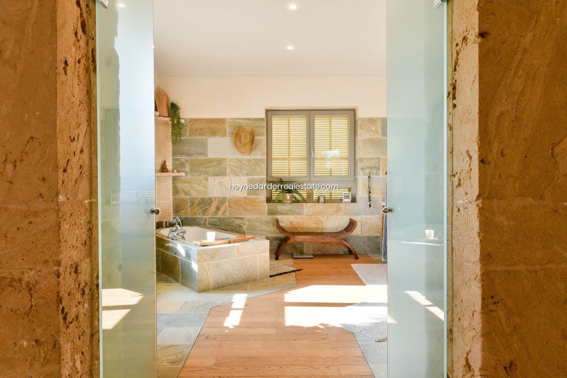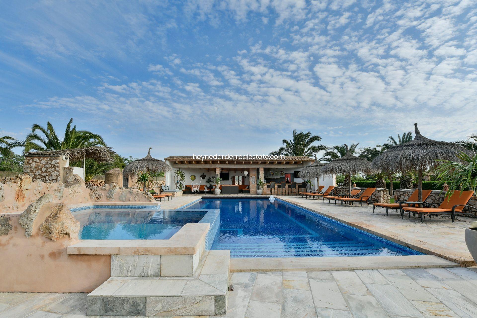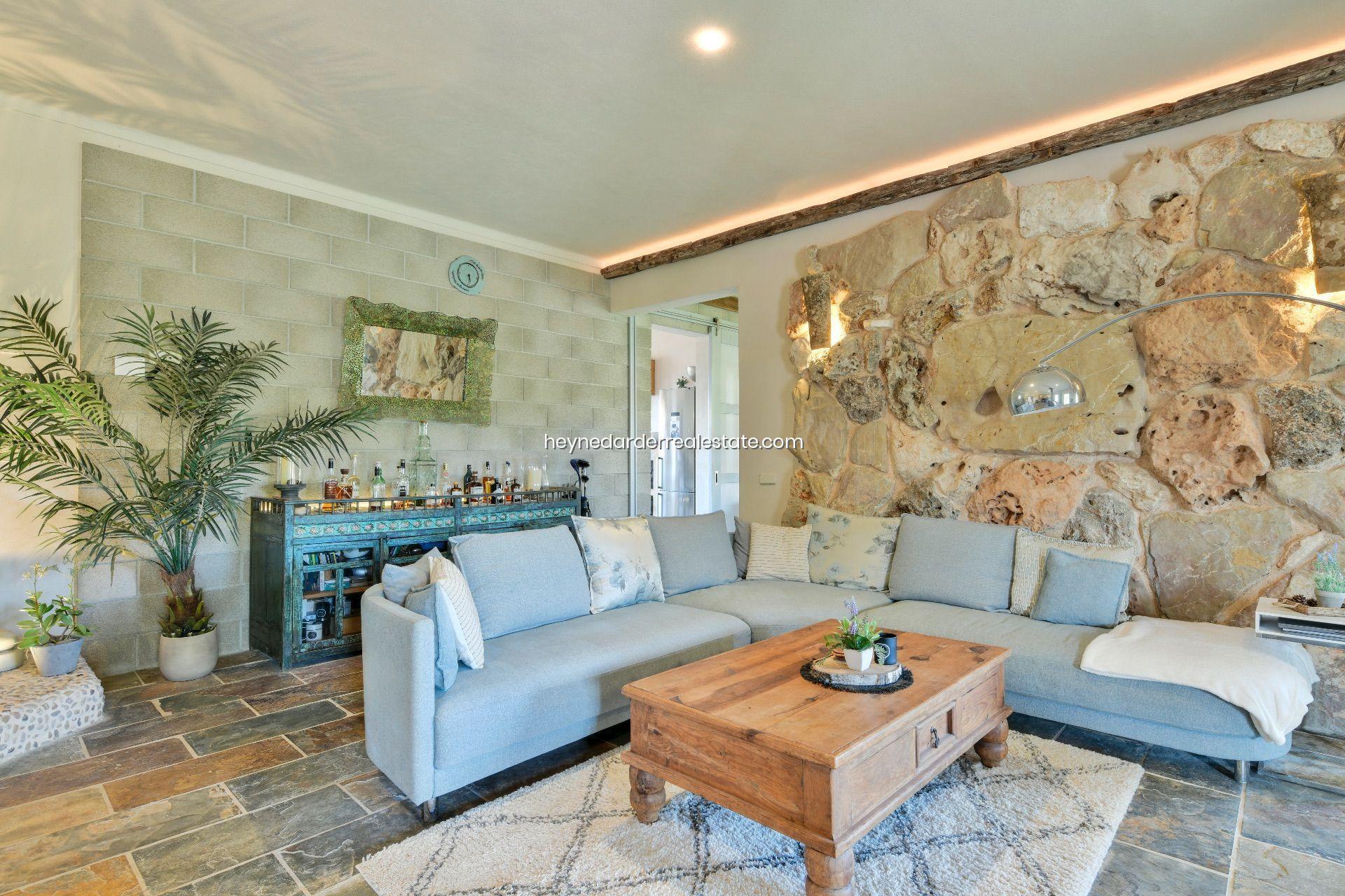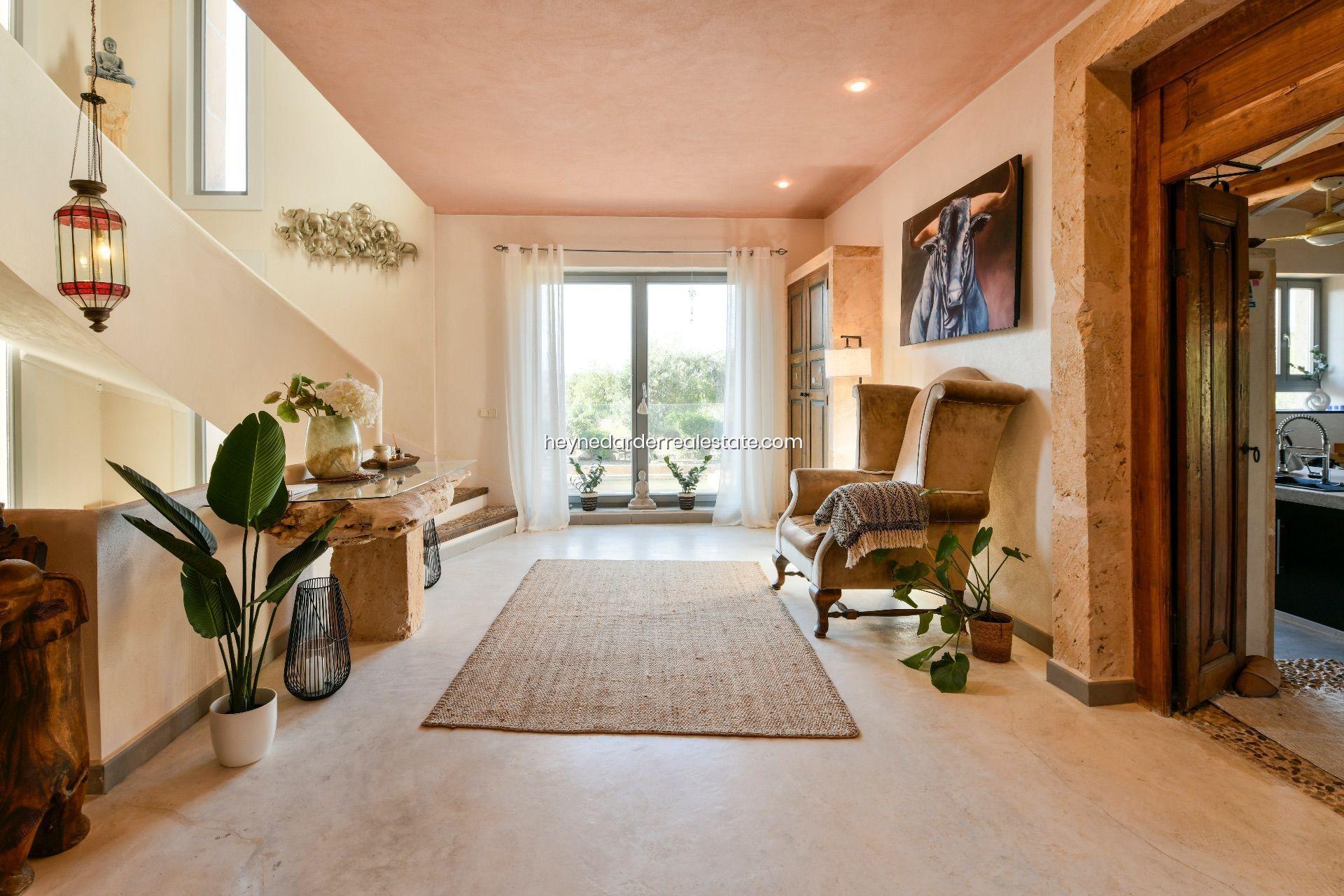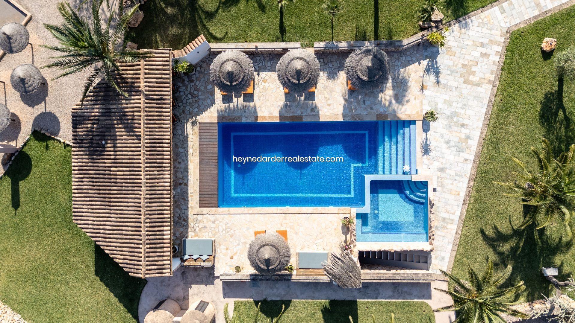 Esta villa se encuentra en una de las zonas más deseadas de Santanyí, entre Cala Santanyí y Cala Figuera. Una ubicación que permite disfrutar de la calma del entorno rural mallorquín sin renunciar a la cercanía de calas de agua cristalina, el centro histórico del pueblo y todos los servicios esenciales.