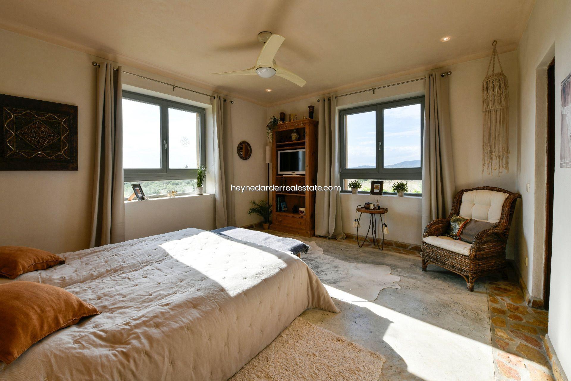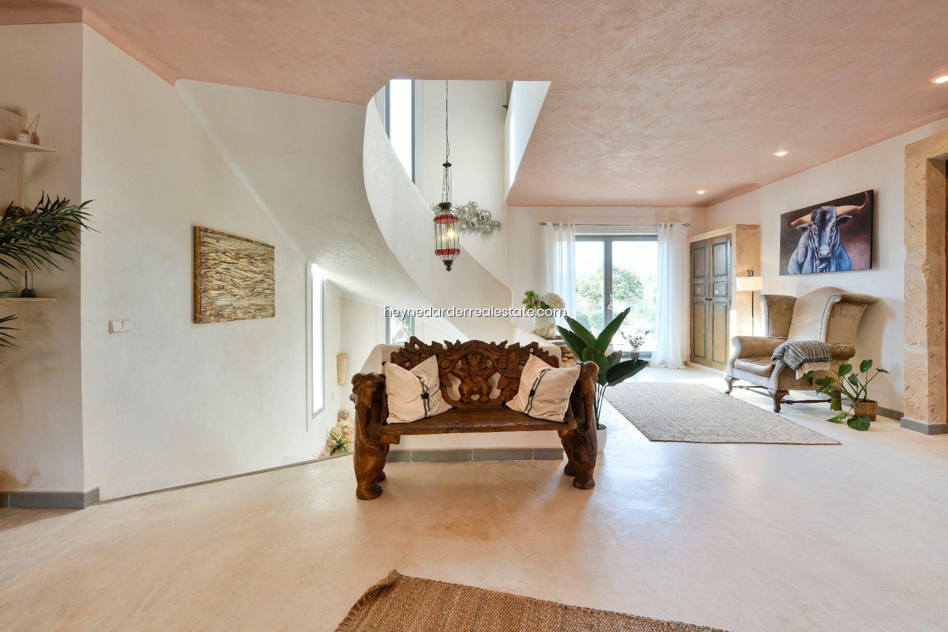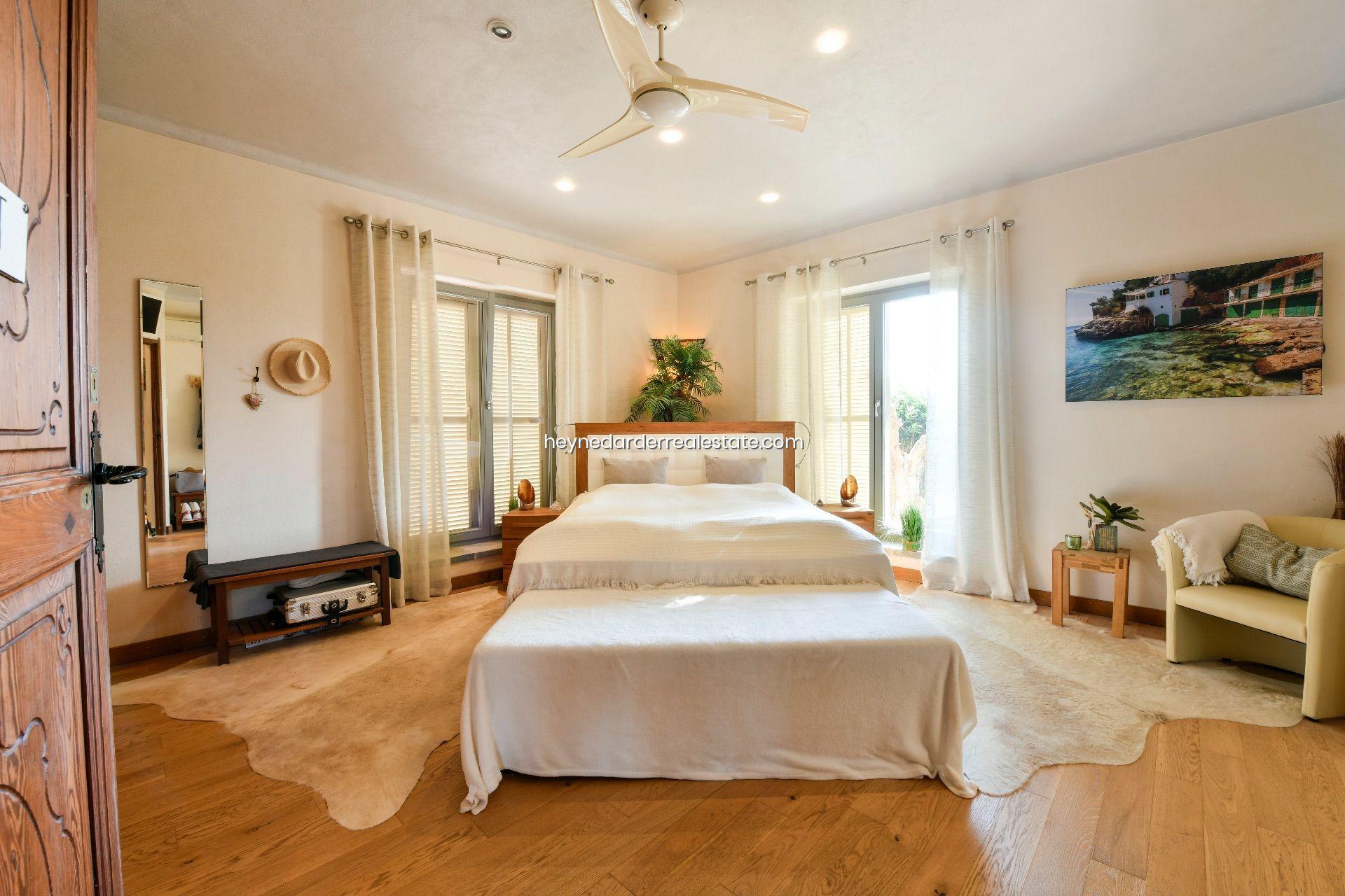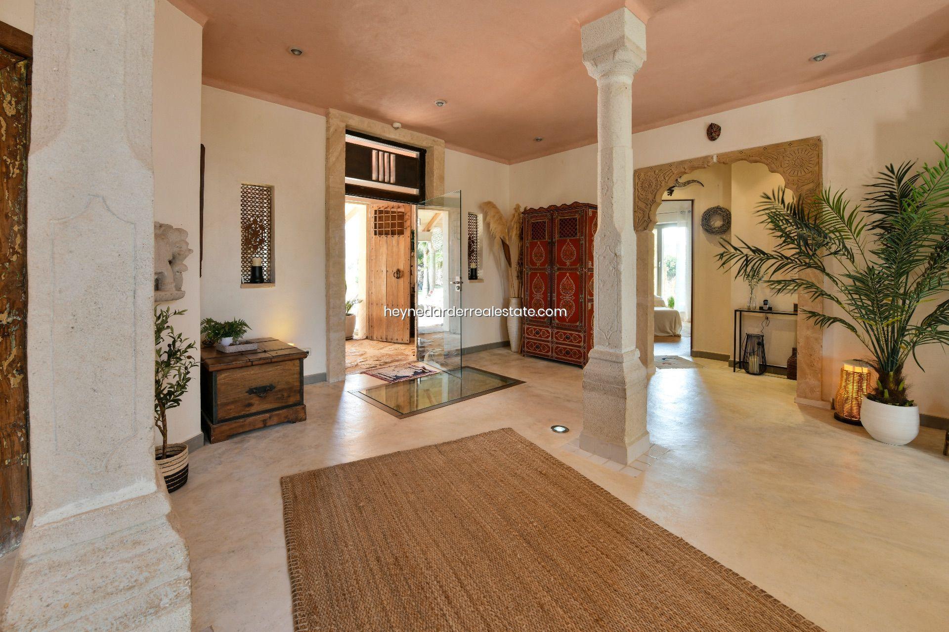 Esta villa se encuentra en una de las zonas más deseadas de Santanyí, entre Cala Santanyí y Cala Figuera. Una ubicación que permite disfrutar de la calma del entorno rural mallorquín sin renunciar a la cercanía de calas de agua cristalina, el centro histórico del pueblo y todos los servicios esenciales.