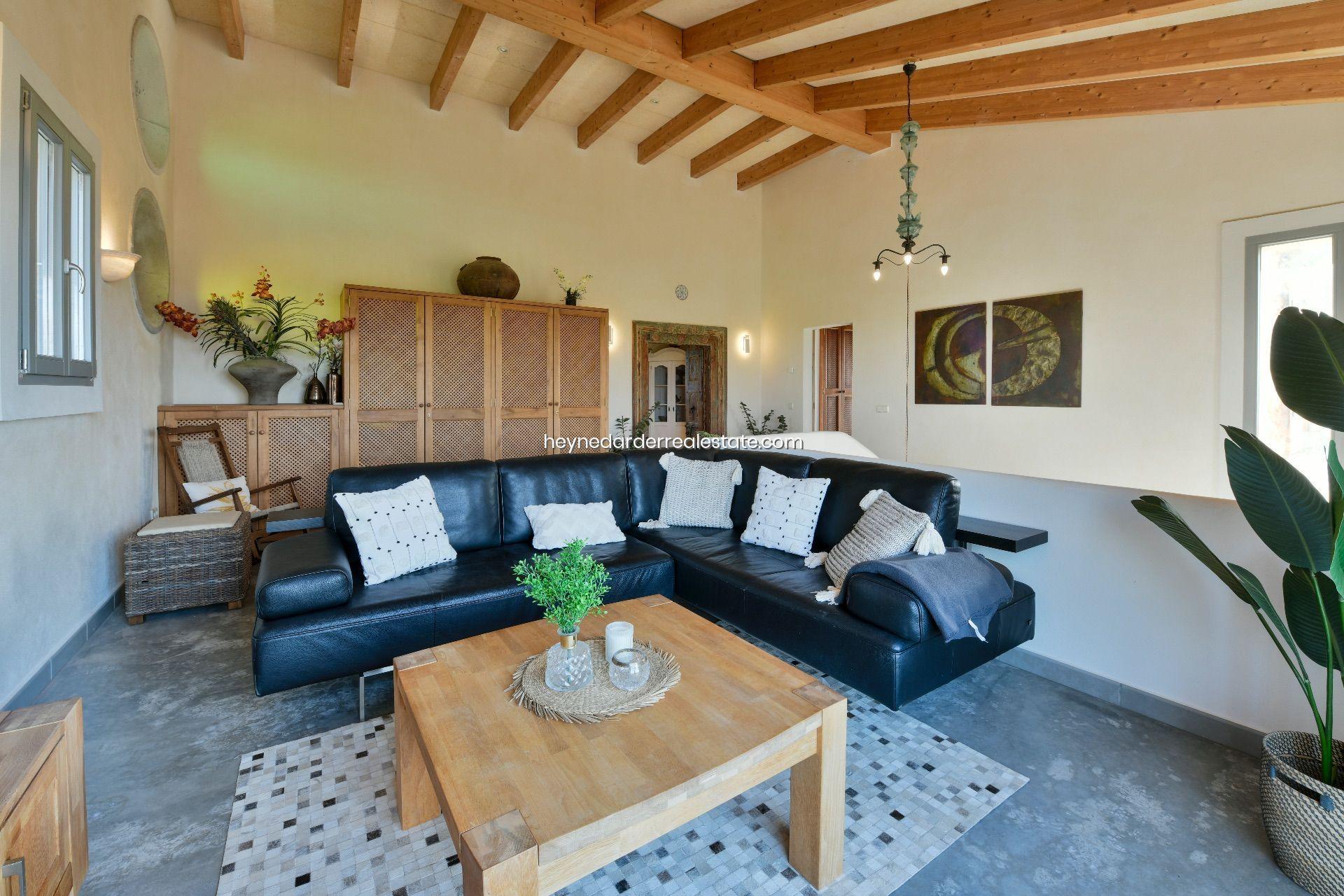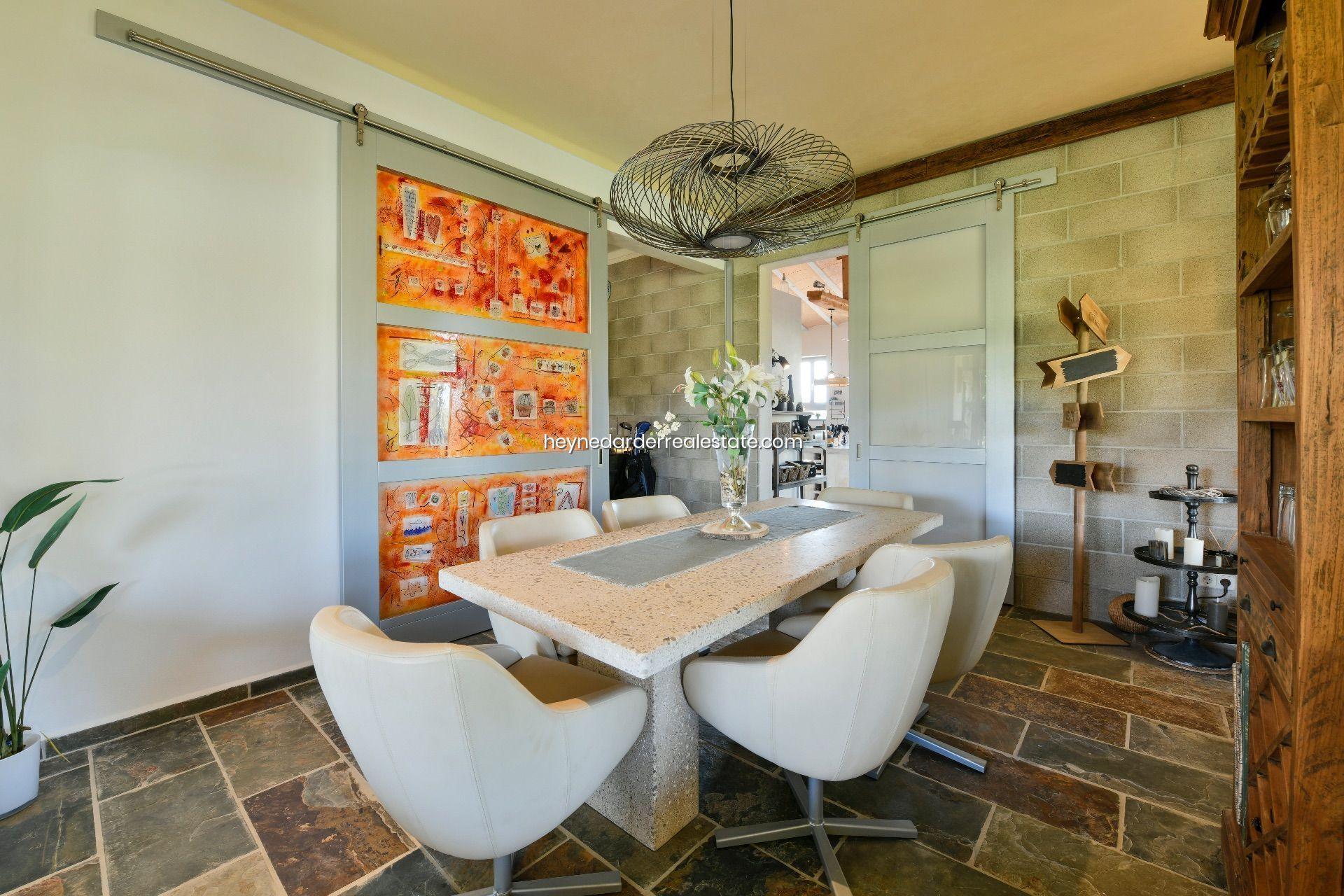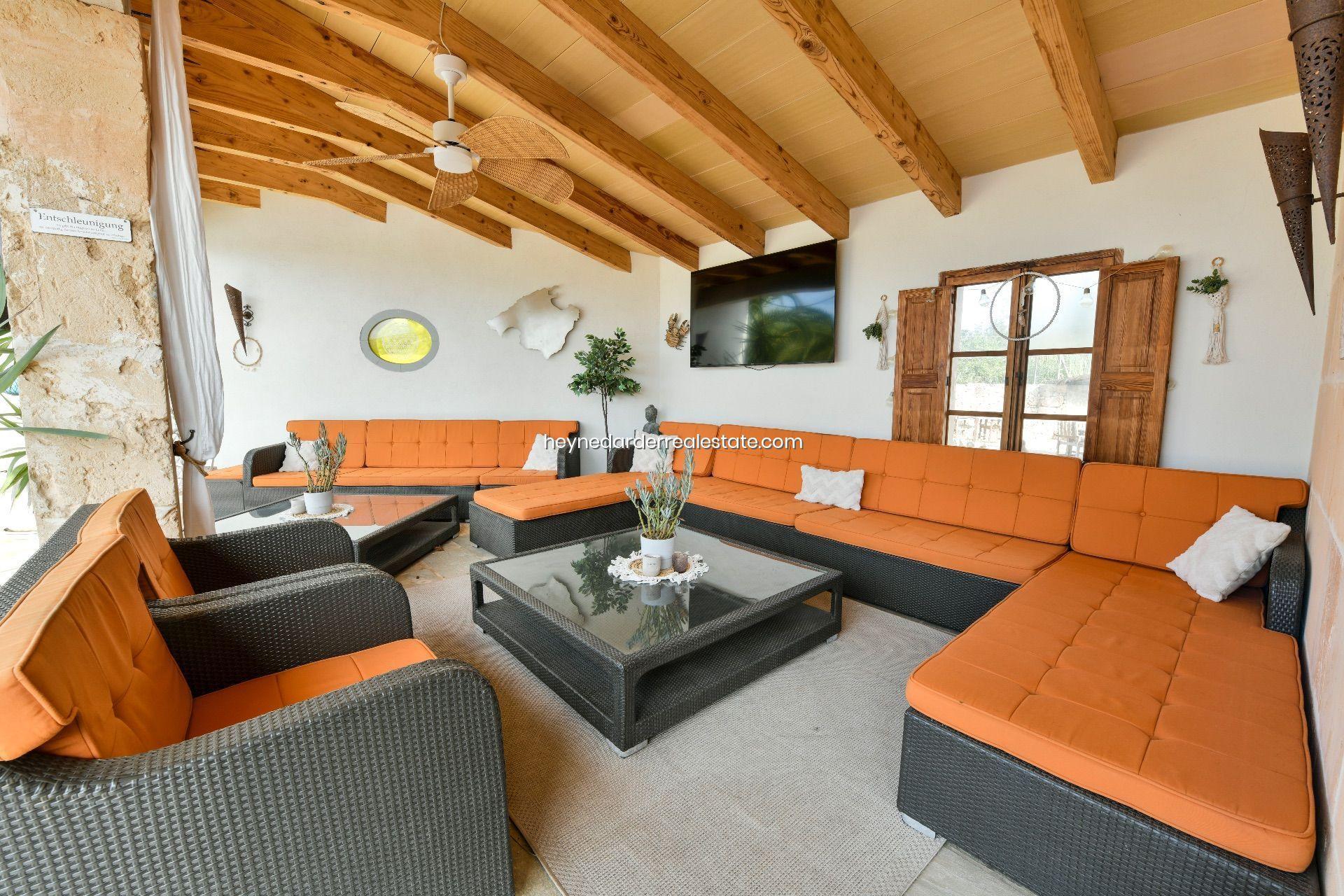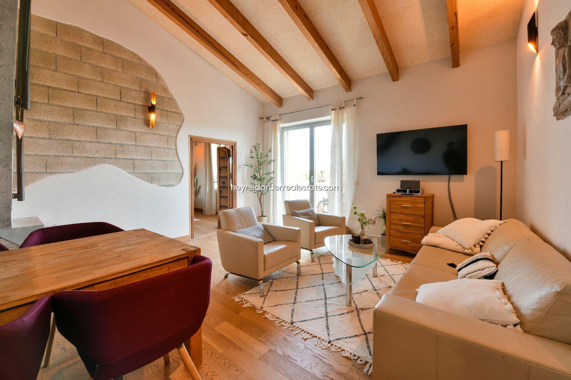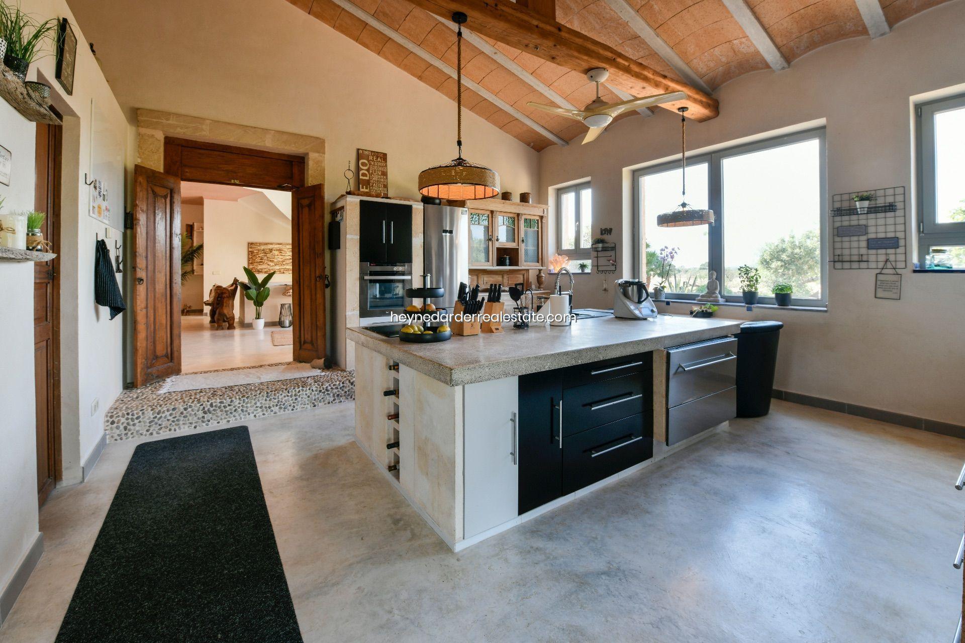 Esta villa se encuentra en una de las zonas más deseadas de Santanyí, entre Cala Santanyí y Cala Figuera. Una ubicación que permite disfrutar de la calma del entorno rural mallorquín sin renunciar a la cercanía de calas de agua cristalina, el centro histórico del pueblo y todos los servicios esenciales.