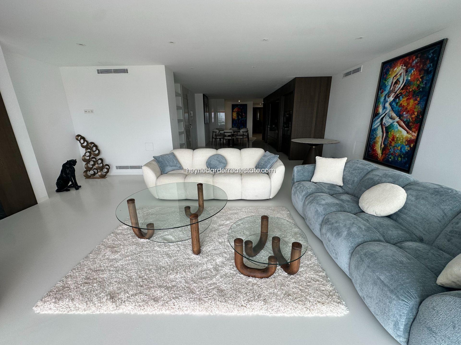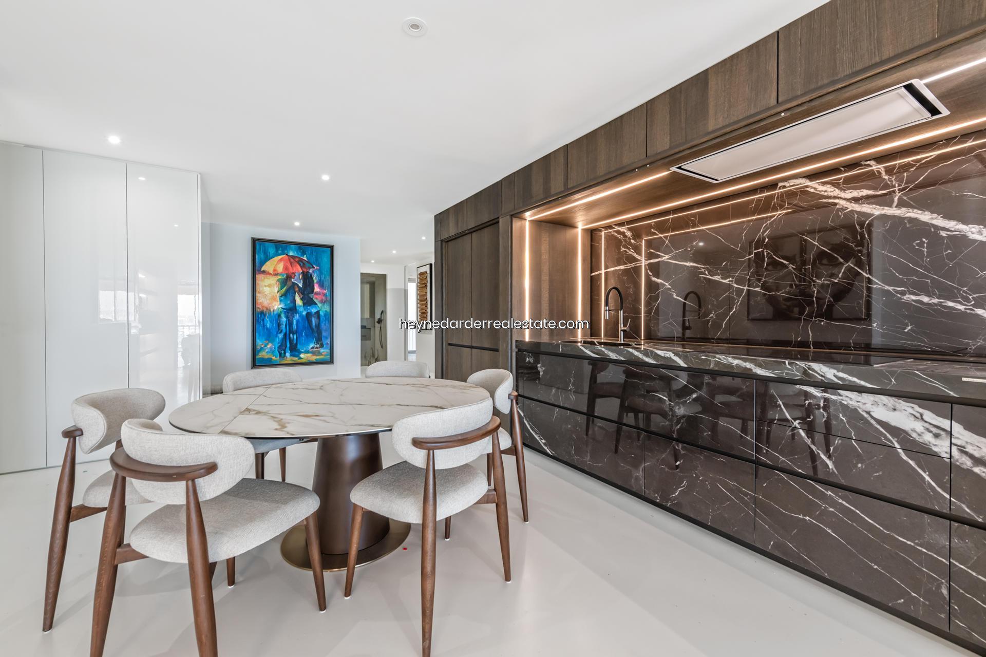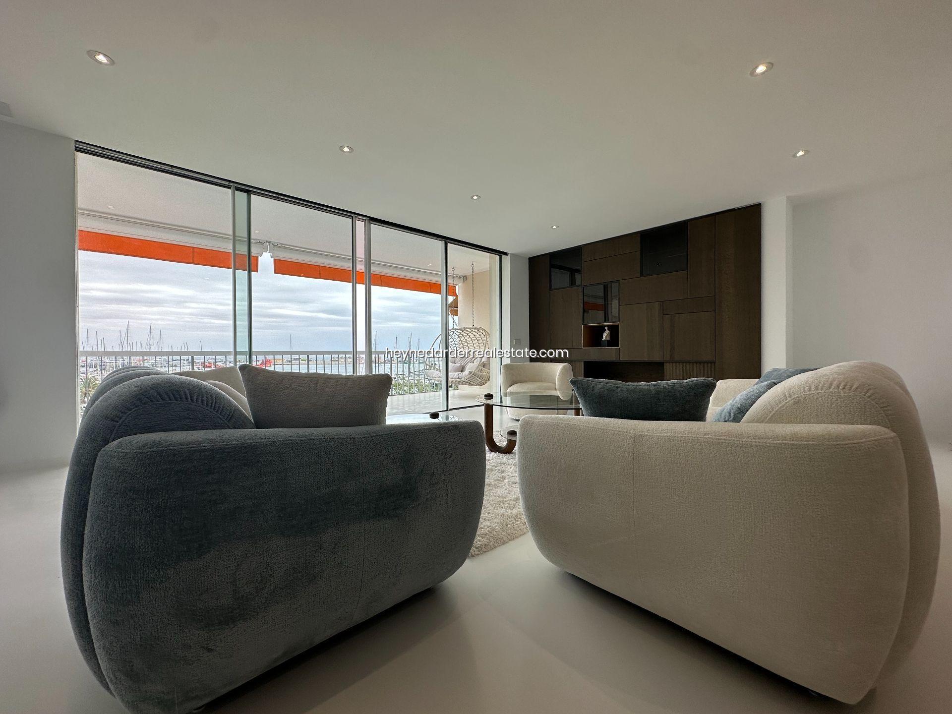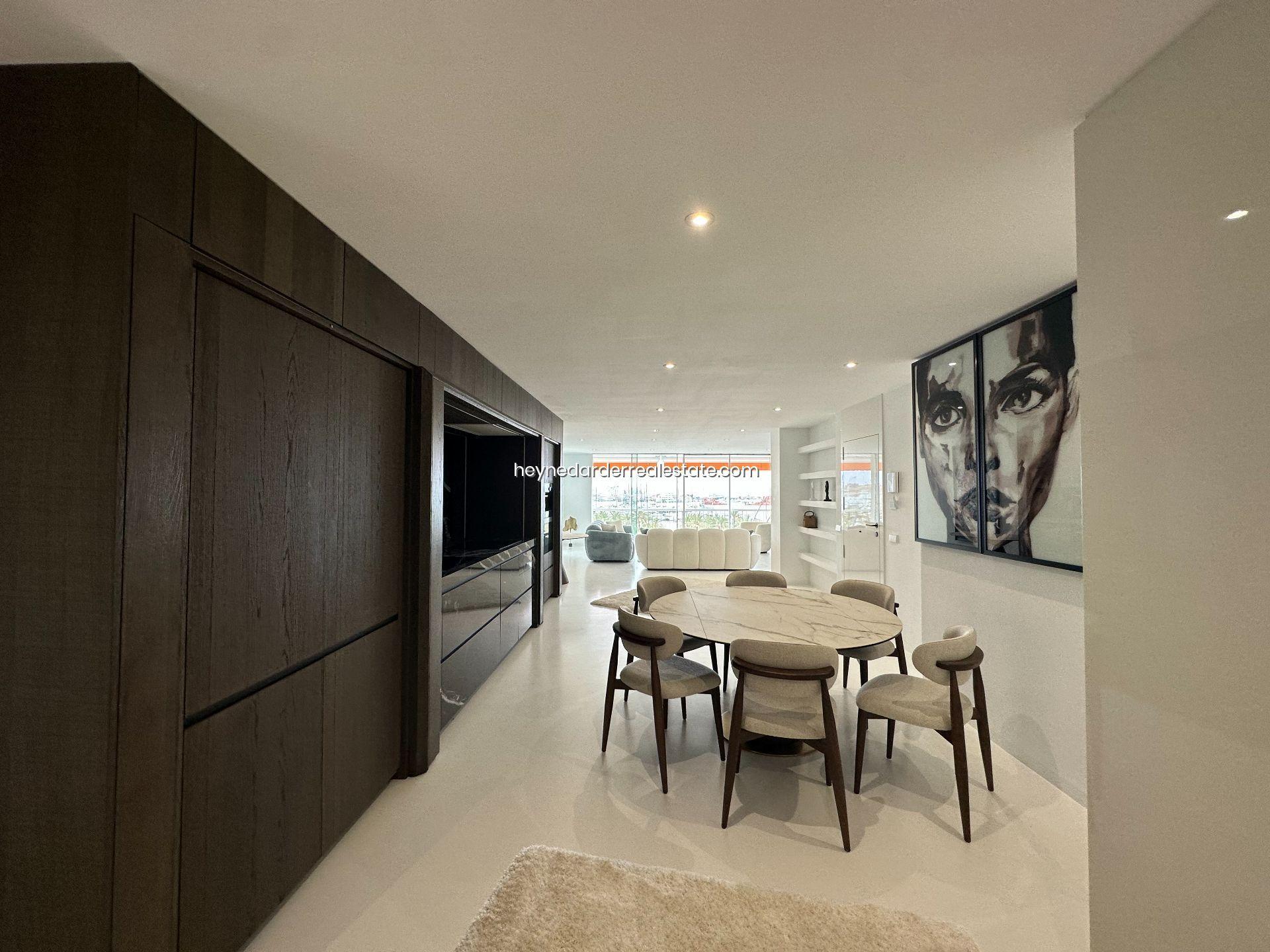 Este impresionante Departamento ubicado en la quinta planta de un edificio de 13 plantas recientemente renovado, cuenta con una superficie de 174 m² y está diseñado con materiales de alta calidad. Ofrece una amplia zona de salón, comedor y cocina de concepto abierto, perfecta para disfrutar de la luminosidad y las vistas. El ático dispone de tres dormitorios, cada uno con baño en suite, lo que garantiza la máxima privacidad y confort. También cuenta con un gran balcón con vistas espectaculares al mar y la marina, ideal para relajarse o disfrutar de una comida al aire libre. La cocina es moderna y cuenta con un diseño innovador y mobiliario retráctil que aporta un toque elegante y funcional. El ático está totalmente amueblado con interiores de diseño exclusivo y dispone de aire acondicionado para mantener una temperatura ideal durante todo el año. El acceso por ascensor a todas las plantas y dos plazas de aparcamiento subterráneo privadas hacen de esta propiedad una opción aún más exclusiva.
