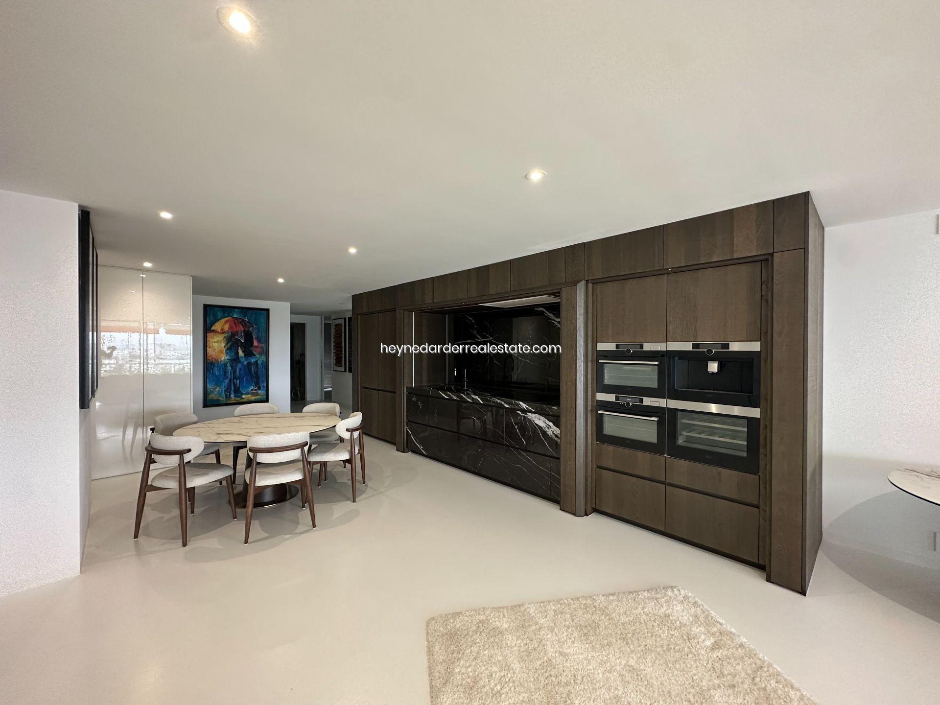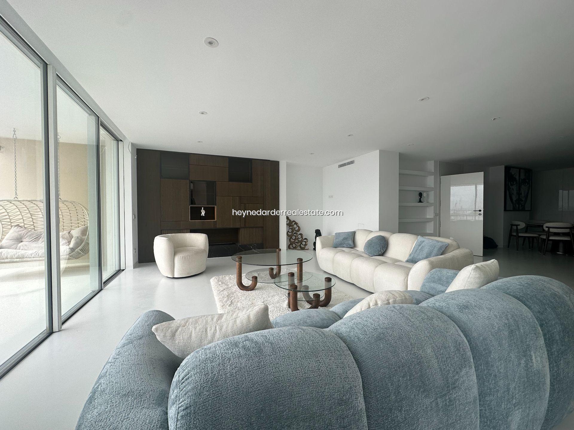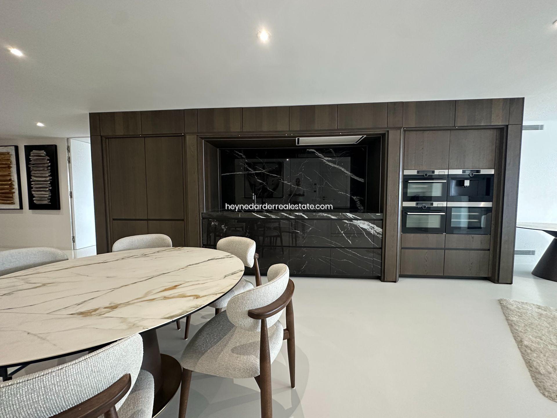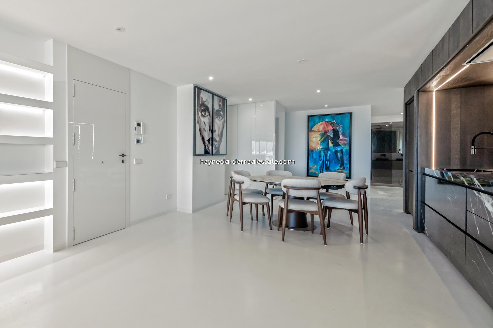 Este impresionante Departamento ubicado en la quinta planta de un edificio de 13 plantas recientemente renovado, cuenta con una superficie de 174 m² y está diseñado con materiales de alta calidad. Ofrece una amplia zona de salón, comedor y cocina de concepto abierto, perfecta para disfrutar de la luminosidad y las vistas. El ático dispone de tres dormitorios, cada uno con baño en suite, lo que garantiza la máxima privacidad y confort. También cuenta con un gran balcón con vistas espectaculares al mar y la marina, ideal para relajarse o disfrutar de una comida al aire libre. La cocina es moderna y cuenta con un diseño innovador y mobiliario retráctil que aporta un toque elegante y funcional. El ático está totalmente amueblado con interiores de diseño exclusivo y dispone de aire acondicionado para mantener una temperatura ideal durante todo el año. El acceso por ascensor a todas las plantas y dos plazas de aparcamiento subterráneo privadas hacen de esta propiedad una opción aún más exclusiva.