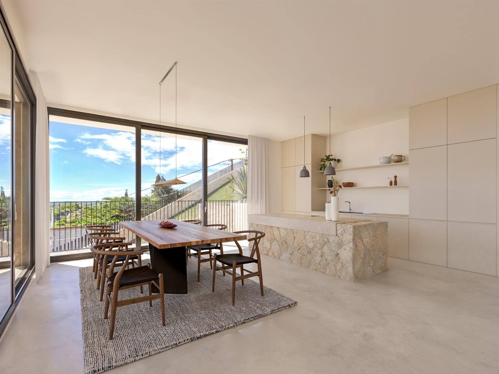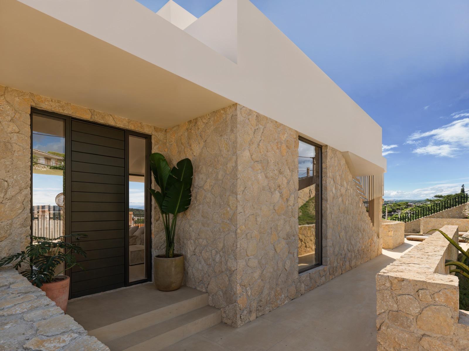 El diseño arquitectónico apuesta por líneas limpias, grandes superficies acristaladas y el uso de materiales nobles como la piedra natural, logrando una estética moderna y atemporal. La vivienda se distribuye en varios niveles, con amplias zonas de día, cocina integrada y una conexión fluida con las terrazas y los espacios exteriores. El proyecto incluye cinco dormitorios en suite, además de un aseo de invitados, ofreciendo comodidad y privacidad para toda la familia y sus invitados.