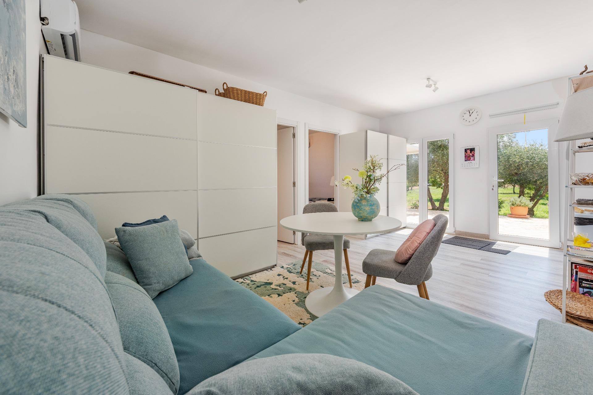 El exterior de la finca está diseñado para disfrutar del estilo de vida mediterráneo, con una piscina de agua salada de 12 x 6 metros como elemento central, amplias zonas ajardinadas con árboles frutales y espacios pensados para el ocio al aire libre. Una cocina exterior con barbacoa y horno de pizza completa un entorno ideal para reuniones y estancias prolongadas.