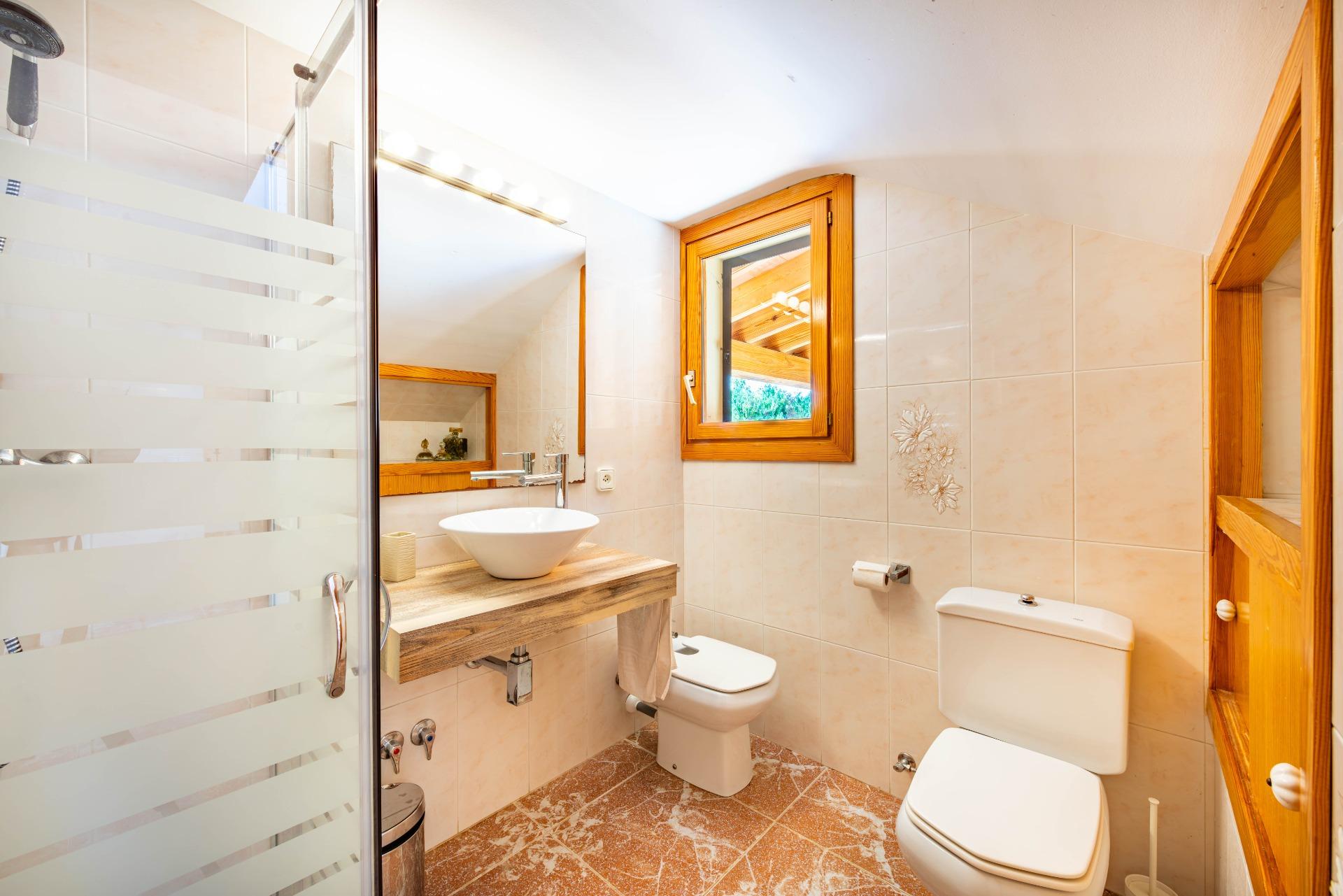 La casa dispone de cuatro amplios dormitorios dobles y tres baños, uno de ellos en suite. El salón cuenta con estufa de leña y existe preinstalación de calefacción central. Una gran terraza cubierta y otra en la planta superior amplían los espacios habitables hacia el exterior. Los cerramientos incluyen persianas de aluminio y la distribución resulta cómoda y funcional.
