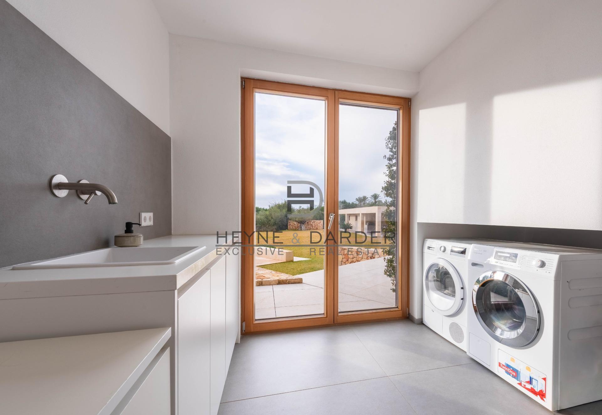 La vivienda se distribuye en planta baja y primera planta y ha sido concebida para ofrecer alto confort tanto en el día a día como en estancias prolongadas con invitados. En la planta baja se encuentran la cocina principal y una cocina de preparación independiente, conectadas con un amplio salón-comedor que actúa como núcleo central de la vivienda. En esta misma planta se ubican un aseo de invitados, la lavandería y varios dormitorios, incluyendo un dormitorio con baño en suite que puede utilizarse también como despacho, así como otros dormitorios destinados a familiares o visitas, permitiendo una gran flexibilidad de uso y capacidad de alojamiento.