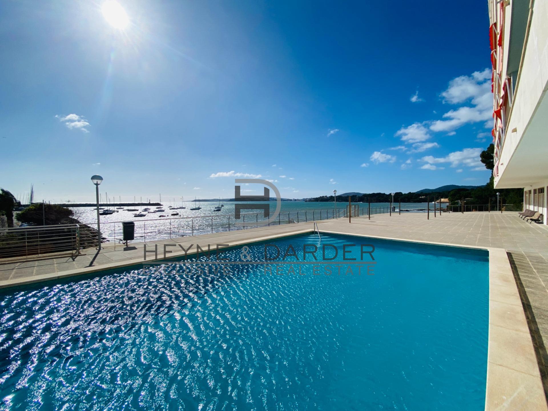 HEYNE & DARDER Exclusive Real Estate presenta: Un ático está situado en primera línea de mar, con acceso directo a la playa y a poca distancia a pie de los elegantes bares y restaurantes del moderno puerto deportivo de Portals Nous.
