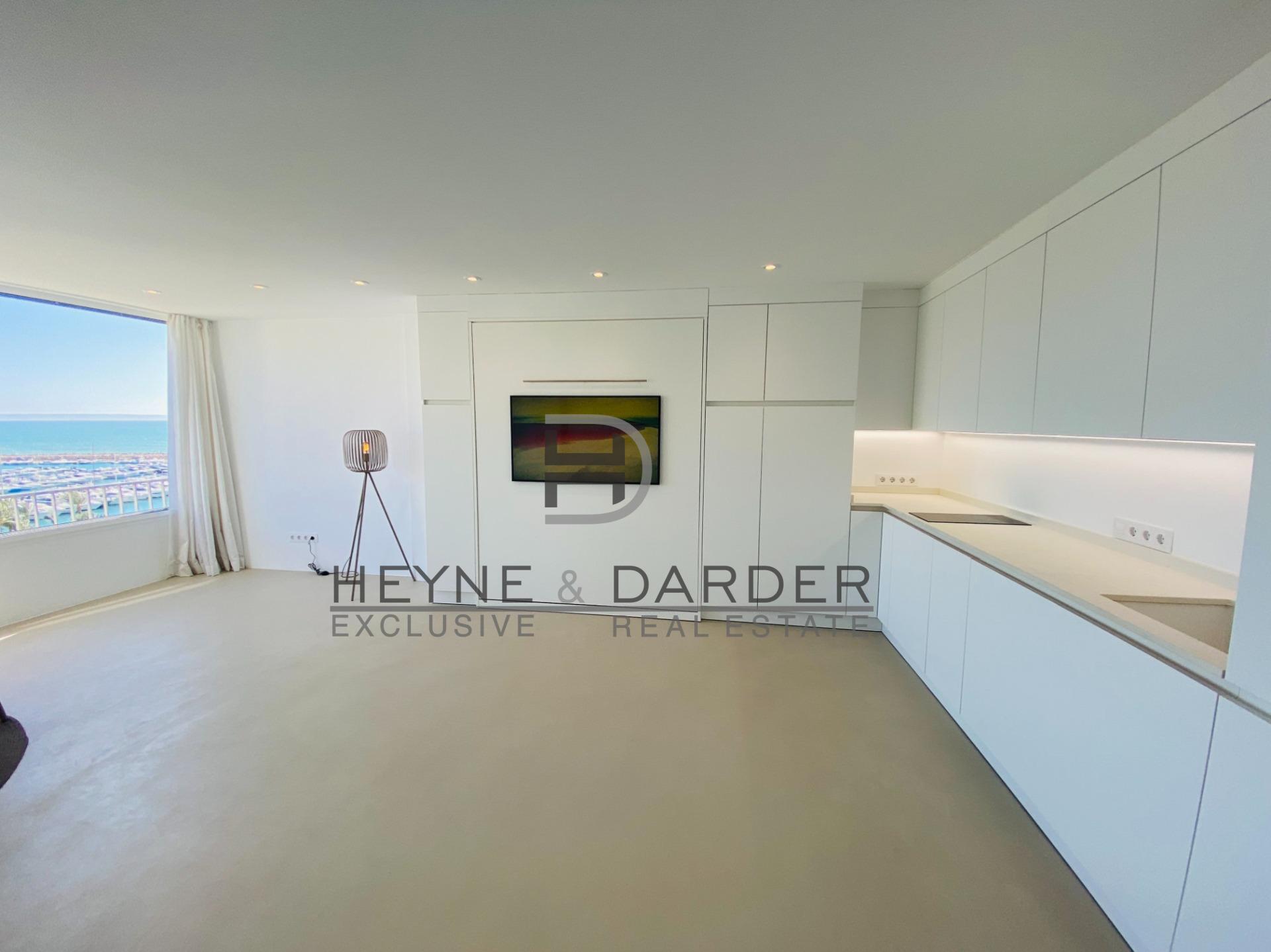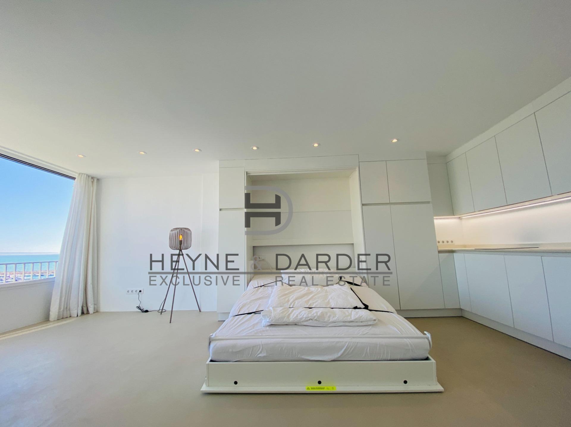Al entrar en el apartamento, quedará cautivado por las fantásticas vistas al mar y al puerto deportivo de Portals Nous. Los tres grandes ventanales de alta calidad se deslizan juntos en un mismo nivel, permitiendo que la luz natural inunde el apartamento, tanto abiertos como cerrados. Completamente renovado en 2022, el apartamento ahora cuenta con un dormitorio y un cuarto de baño con ducha. La moderna cocina se integra a la perfección en el espacio diáfano. El salón-comedor incluye una cama doble plegable adicional de alta calidad que se oculta tras el televisor durante el día. Esto proporciona al apartamento dos camas dobles, con capacidad para hasta cuatro personas. El suelo de microcemento de color claro recorre todo el apartamento. Todas las habitaciones están equipadas con aire acondicionado y el baño cuenta con calefacción por infrarrojos. Un ascensor facilita el acceso desde la planta superior del edificio a la planta baja, que conduce directamente a la piscina privada del edificio con tumbonas y a la playa de arena fina. La amplia zona de baño abarca toda la playa y está separada de los pequeños veleros amarrados frente a ella por una cadena de boyas. Un pequeño sendero conduce directamente desde la playa hasta el extremo oeste del puerto deportivo de Portals Nous. Por lo tanto, se puede llegar al puerto deportivo, con sus elegantes bares y restaurantes, a pie, ya sea por la playa o por la carretera de acceso público. El complejo residencial «Apartamentos Club Marina» ofrece un amplio aparcamiento gratuito en su recinto privado y vallado. La excepcional ubicación de estas propiedades es, sin duda, una de las mejores y más solicitadas de Mallorca.