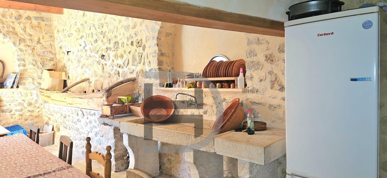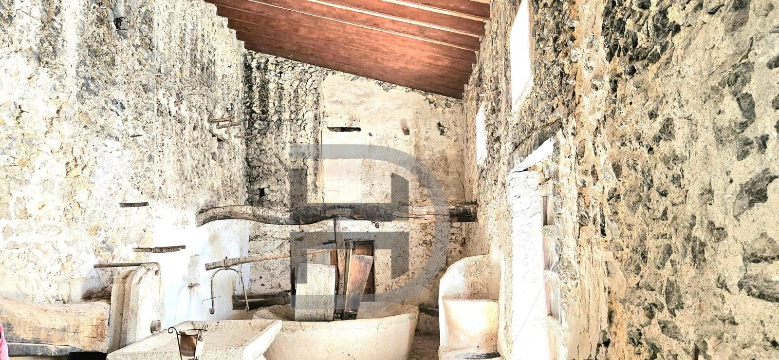Distribuida en dos plantas, la vivienda ofrece estancias amplias y llenas de carácter, donde materiales nobles como la piedra, la madera y las baldosas originales mallorquinas son protagonistas. El gran salón, con su emblemático suelo de piedra diseñado para el paso de animales durante la recolección de aceitunas, representa una pieza única difícil de encontrar en la actualidad.