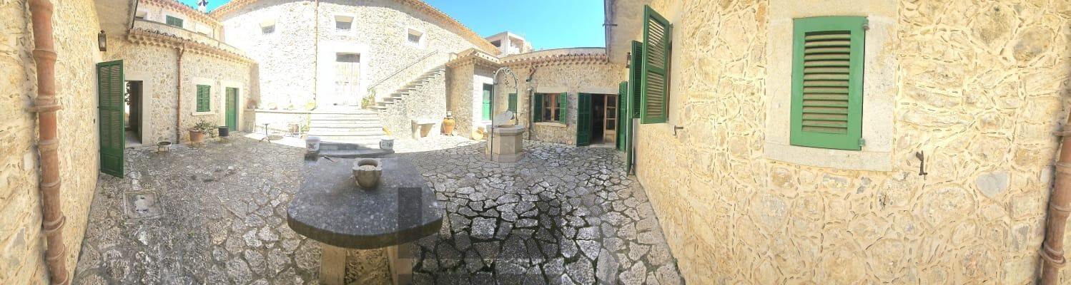 El jardín de aproximadamente 627 m² aporta un espacio exterior íntimo y lleno de encanto, ideal para disfrutar del entorno natural que rodea la propiedad. Los patios y accesos exteriores refuerzan la sensación de finca tradicional mallorquina, donde cada rincón cuenta una historia.